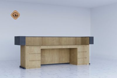 Quầy lễ tân được thiết kế theo phong cách hiện đại, kết hợp hài hòa giữa chất liệu gỗ và kim loại, mang lại vẻ đẹp sang trọng và ấm cúng cho không gian tiếp đón khách hàng.