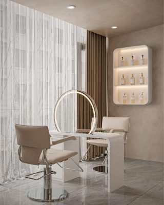 CD Wood & Furniture – Chuyên thiết kế và sản xuất nội thất tiệm nail theo yêu cầu riêng, kết hợp ngăn kéo đa năng và kệ để dụng cụ tiện lợi. Không gian được tối ưu với màu sắc nhẹ nhàng. Thiết kế đa năng, có thể tùy chỉnh kích thước phù hợp với diện tích nhỏ nhưng vẫn đảm bảo tính thẩm mỹ và tiện ích.